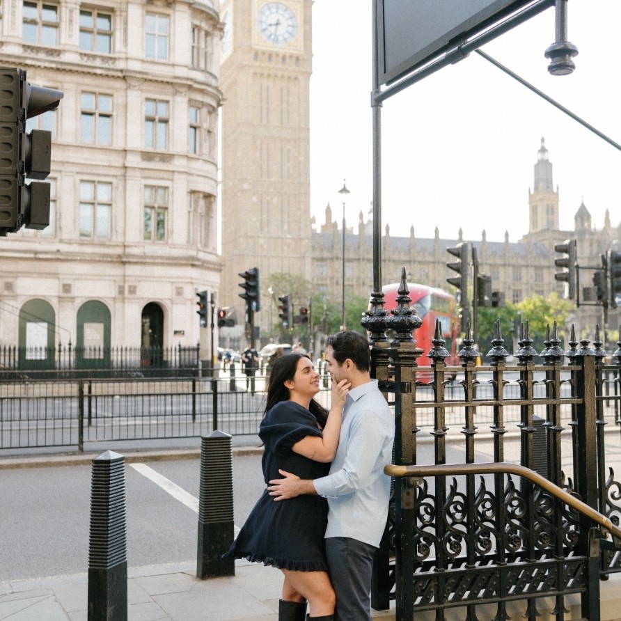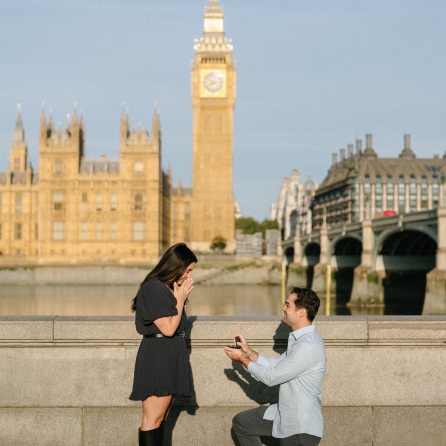 One of those adventures took them to London, Samantha’s favorite city. That’s where John proposed, with the most romantic backdrop imaginable: overlooking Westminster Abbey and Big Ben. It felt like a real-life postcard and the perfect beginning to the next chapter of their story.